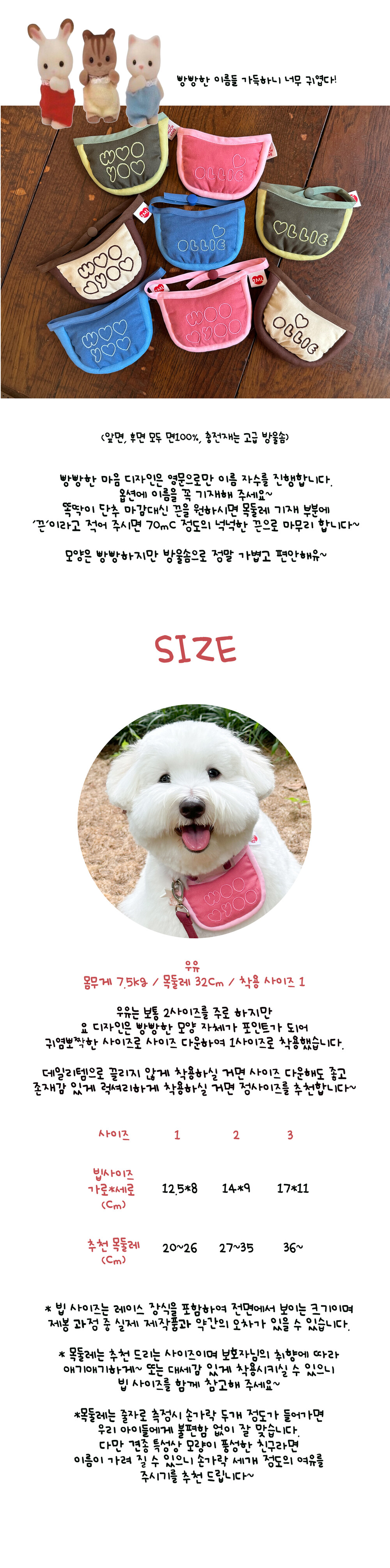 영문 이름 / 빕사이즈 / 목둘레