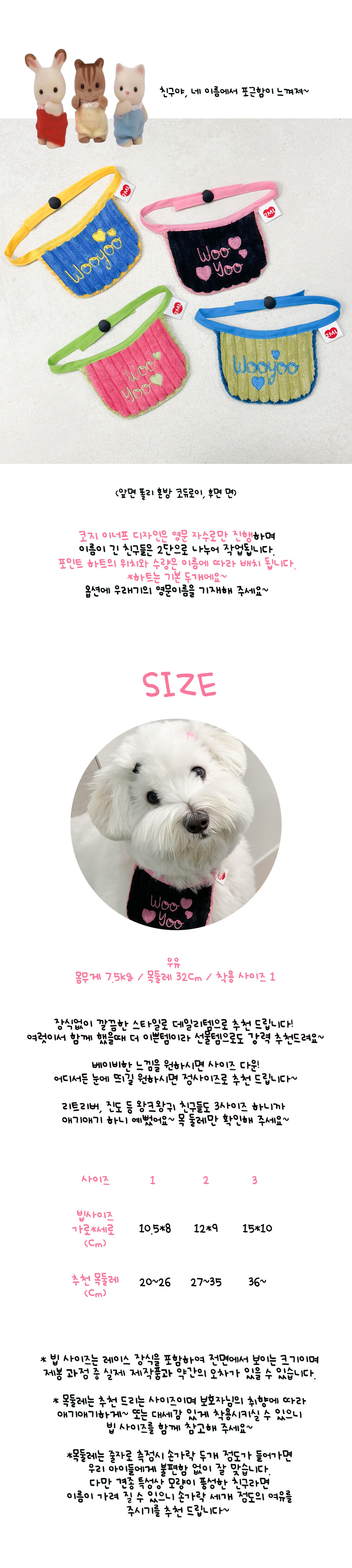 영문 이름 / 빕 사이즈 / 목둘레